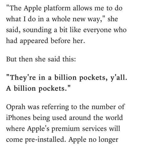 Apple unveiled their highly anticipated entertainment reboot with Apple TV, as well as their subscription model news service. The debut was flashy and uncharacteristic of the company. Also, the move provided us with minimal details. Patience is key. Here’s what Oprah has to say regarding her newly announced partnership with Apple.