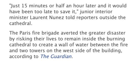 Notre Dame caught fire and was nearly a few minutes away from certain destruction.