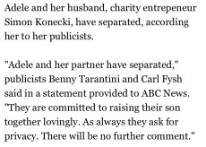 The only person anyone kind of roots for to have bad things happen to her is Adele, because at least we get good albums afterwards. Selfish, right? Anyways, her marriage has come to an end as she and her husband split up. Expect a Grammy award winning album soon!
