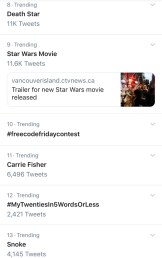The movie, titled The Rise of Skywalker, broke the Internet when released. The tally of views and traffic shows that Star Wars is undoubtedly the most popular movie franchise in America. Check out what happened on Twitter immediately after the trailer was dropped. It was LITERALLY the only thing that mattered.