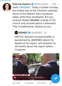 MSNBC found themselves in hot water when a reporter tracked down Mr. Mueller as he was walking out of his Easter Sunday mass.