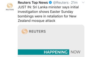 Below, you’ll see early reports are this was retaliation for the recent attack in Christchurch. Many experts on the matter have quickly disputed this intelligence. Why? Christchurch was March 15, and it seems highly unlikely that an attack this sophisticated, and this coordinated could have been put together that fast. Also, reports of the Islamic State taking credit are being questioned as well.