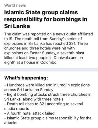Easter Sunday brought the world a chilling display of pure evil. The evil was carried out by a local group in Sri Lanka comprised of Extremist Muslims. The attack was targeted, carefully calculated, and killed over 300 people, and rising.