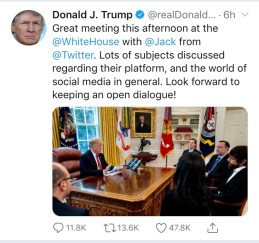 Speaking of Twitter… news broke late Tuesday that Twitter CEO Jack Dorsey met with President Trump at the White House.