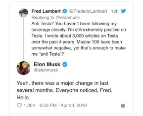 Musk couldn’t stop there. After showing up 48-minutes late to his own investors conference he decided to take to Twitter to fight with a journalist.