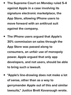 The Supreme Court ruled against Apple earlier this week in a case that likely spurs antitrust legislation. You know, those cases where you get $2 back in three years and lawyers get incredibly rich. Apple lost 4% on the week.