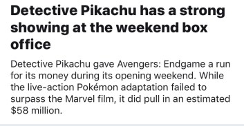 Detective Pikachu did not dethrone Avengers However, it did amass a sizable victory in its first weekend at the box office.