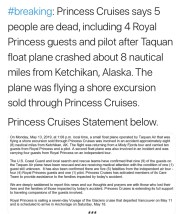 Bad news out of Alaska with regard to cruise ships. We lost five individuals when two seaplanes collided.
