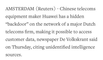 Also, The Netherlands has now accused China of spying on Dutch citizens through Huawei. Take a look at this report.