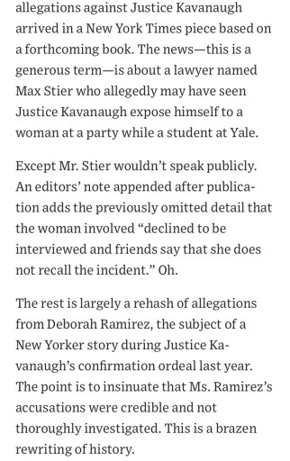 Third, the best part of the story is the twist. How did we get here? Well, conservative reporter Mollie Hemingway noticed the omission, and connected the dots of inaccuracy on Sunday. How? She had a copy of the book set to be released on Tuesday and took to Twitter to throw cold water on the already blazing fire. Kavanaugh had already been the center of nearly one million tweets by then, commanded the top story for nearly twenty-four hours, and had resulted in countless Democrat Presidential candidates blindly calling for his impeachment.